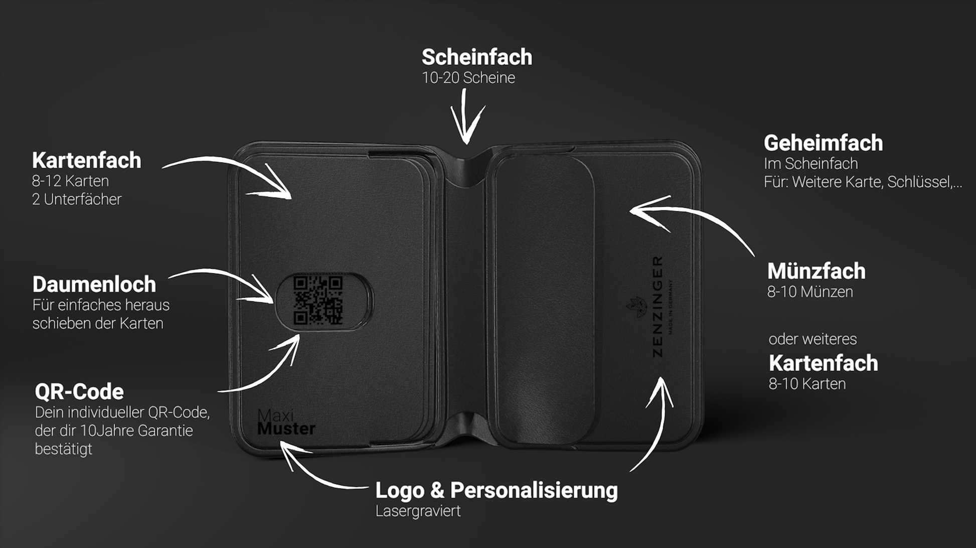 - Kleingeldfach für Münzen (oder 3 weitere Karten)