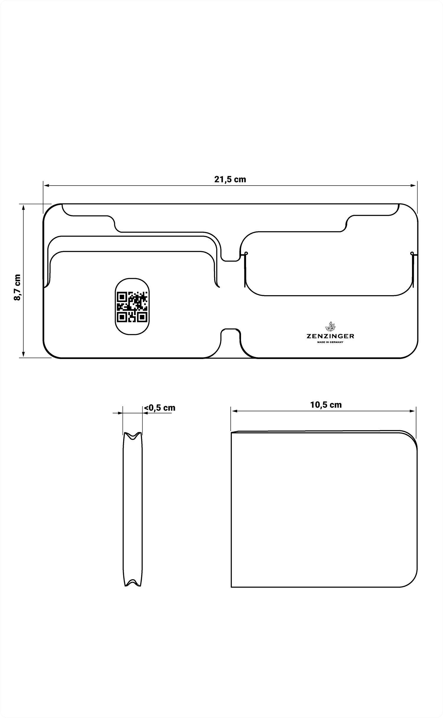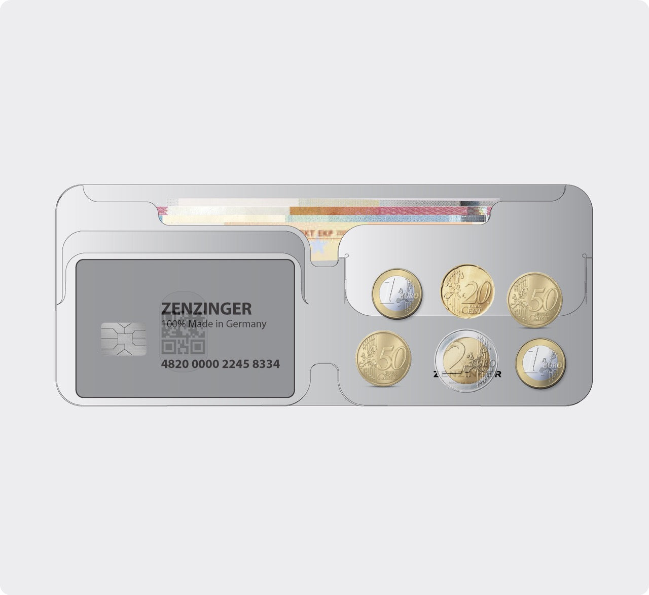 - Kleingeldfach für Münzen (oder 3 weitere Karten)