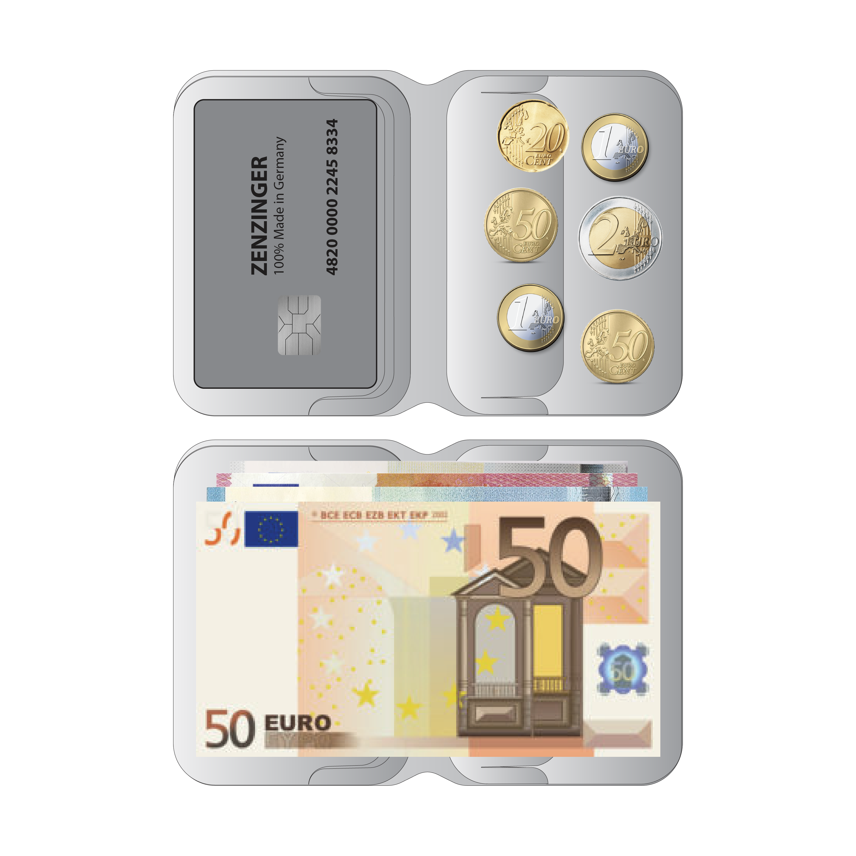 -> Kleingeldfach für Münzen (oder 3 weitere Karten)